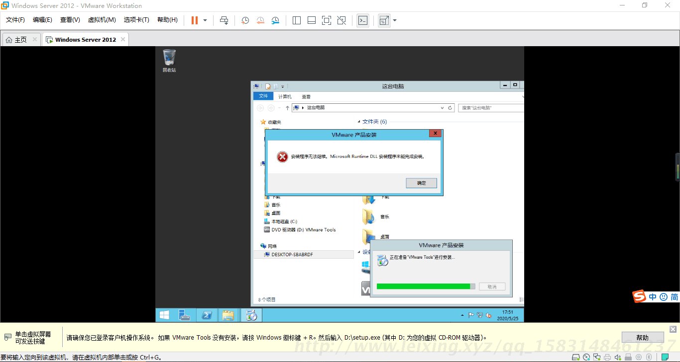 VMwareTools安装问题:Microsoft Runtime DLL安装程序未能完成安装。
