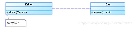 UML中表示:依赖关系用带箭头的虚线表示,由依赖的一方指向被依赖的一方。
